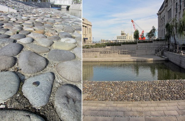 上左写真の鋲の下には、本当に使用していた「荷揚げ場」が眠っているそうです。なぜ?と思い調べたところ、保存と将来の調査の為にこうしたということです。